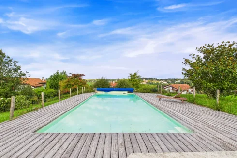 Bardos, quiet with an exceptional view of the mountains, up to the Biarritz Lighthouse. Come and discover this beautiful recently built house, ideal for a large family or for a bed and breakfast project. The house of approximately 316 m² of living space is composed as follows: - On the ground floor, enjoy a double living room of 77 m² with access to the terrace and swimming pool, a kitchen open to the dining room of 27 m², then a master suite with shower room and toilet. As well as a storeroom, a laundry room and a separate toilet. - On the 1st floor, you arrive on a mezzanine of 20 m², followed by a hallway which leads to 4 bedrooms each with its own shower room with toilet, all opening onto a south-facing balcony. A fifth bedroom with bathroom and toilet and a games room complete the floor. There is also a 23 m² boiler room and a 16 m² independent garage, all on a beautiful 4000 m² plot. Wooded land DPE D / GES D Exotic wood terrace 10.5 x 4.5 swimming pool Possibility of detaching a 1900 m² plot. For a peaceful living environment while maintaining proximity to amenities, the A64 motorway, Bayonne, the airport and the beaches of the Basque coast. Come and visit with the Selection Ocean Agency.