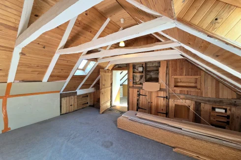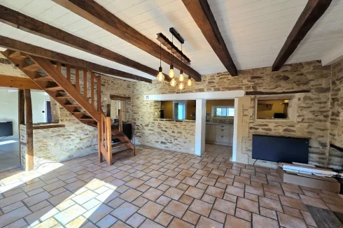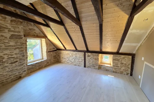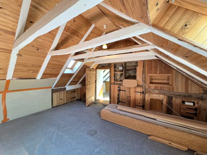 Boussac, house of 156m² of living space and its land of approximately 5,000m², with its barn and stone shed The farmhouse-style house is composed of the living area on the 1st floor and several cellars on the ground floor. Upon entering the house, you will find a very pretty dining room of 31.3m² equipped with a pellet stove. This opens onto a well-appointed 15.2m² kitchen with an open space to share the moments of preparation with the guests! In mid-season, you will also have the choice of going to enjoy a 15.5m² veranda but also a tiled terrace from which your eyes will be drawn to a striking view of the rolling countryside! Continuing from the dining room, a cozy 24.3m² living room leads to the 7.4m² shower room and toilet, then a large 26.6m² bedroom for which work is to be completed! You have the possibility of transforming it into a master suite, creating a dressing room or sharing it into 2 bedrooms if you wish! On the 2nd floor, the landing gives access to two other bedrooms of 19.7m² and 22.3m², one of which has a functional toilet. These two bedrooms are also to be finished for maximum comfort! The property is supplied by spring water but you have the possibility of switching to city water, the house already being equipped with a water meter. On the ground floor, 3 large cellars with a total surface area of 97.6m² will allow you to tinker, store and store everything you need! One of them will charm you with its vault! A superb barn on 2 levels of 100m² each, is accessible on the ground floor for both! The lower level is on a concrete slab, while the upper level is a floor, accessible for large bulky items thanks to its large opening located under the 250m² stone shed! The latter will allow you to park your cars dry in all seasons! You will have the joy of enjoying a superb plot of land of approximately 5,000m² in total, part of which is located above the house! The view is splendid from each part of the land, you will not be able to be indifferent! Concerning the house: double-glazed aluminum joinery from 2024, pellet stove + recent dry inertia radiators, kitchen from 2021, slate roof from 2015, insulation done between the floors + by the floor + in the attic for 1 bedroom. Virtual tour available! Do not hesitate to contact us, we will be happy to present this very beautiful property to you! Information on the risks to which this property is exposed is available on the Georisques website: »