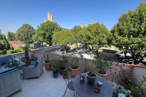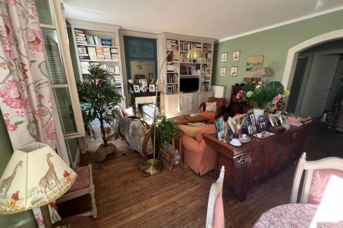 Ideally located in the heart of this sought-after market town, this three-storey townhouse offers generous living space, period character and a rare private terrace. This property has a spacious entrance hall wth access to the cellar, ideal for additional storage and a traditional staircase up to the first floor. Here, the light-filled salon features handmade bookcases, tall windows with shutters, and an original fireplace, creating a comfortable and elegant living area. A fitted kitchen and separate back kitchen provide practical workspace, and there is also a WC on this level. The second floor includes three well-presented bedrooms, some enjoying direct views of the abbey, along with two modern shower rooms. From here, stairs lead up to the attic, offering potential for storage or future conversion. Outside, the roof terrace is a standout feature, a private and usable outdoor space with open views towards the abbey, complete with an electrically operated awning, perfect for outdoor dining or simply enjoying the setting. The property benefits from mains gas central heating, double glazing, and all major works have been completed. A comfortable and well-maintained home in a prime location, ready to be lived in immediately.