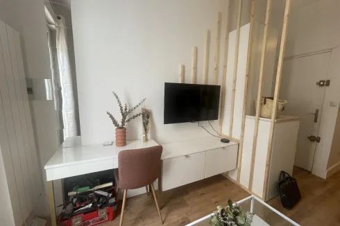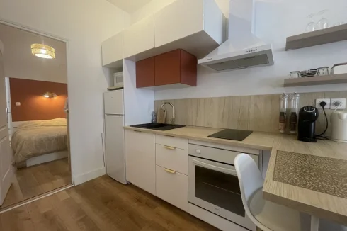 Beautiful furnished one-bedroom apartment of approximately 30 m2, close to all amenities including the train station located a few minutes away, completely renovated and furnished with great taste. Composed of a separate bedroom, a bathroom and a toilet. Ideal pied-à-terre, first purchase or rental investment. TO VISIT VERY QUICKLY. Well subject to the legal status of the co-ownership, 9 lots, annual co-ownership charges of €800, no proceedings in progress.