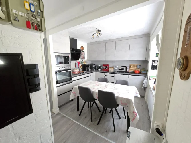 Located in a peaceful village, 87 m² house with small adjoining plot and a 30 m² workshop/laundry room. 5 km from all shops and services, school and college, 17 km from Lake Pareloup and 20 km from Lake Villefranche de Panat, 32 km from Rodez. On the ground floor is the workshop/laundry room with access to the land. On the first level, a new, furnished and equipped kitchen/dining room adjoining the living room, a shower room and a separate toilet complete this level. Note that it would be possible to create an open living room quite easily and transform the living room window into a French window in front of which there could be a balcony and a staircase to access the land. Above, a bedroom adjoining an office space, and a second room of 8.2 m² as an extra bedroom. A final room with a water point and drainage could accommodate a bathroom with toilet, currently used as a dressing room/storage room. A property that has benefited from numerous works and refreshments over the last 5 years, ideal for first-time buyers or second homes, not far from the Levezou lakes. Technical side: Stone house with rendered facade, oak frame, fiber cement asbestos roof, glass wool insulation, PVC double glazing, electric roller shutters. 150 L electric water heater, air/water heat pump heating from 2021, solar panels which offer electrical independence and a resale of around €400/year, insulation under the roof with glass wool and TMS between the workshop/laundry room and the upper floor, kitchen from 2024, connected to the TAE, furnished and equipped kitchen. Information on the risks to which this property is exposed is available on the Georisques website: »
