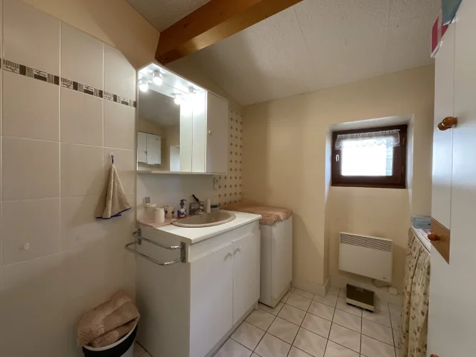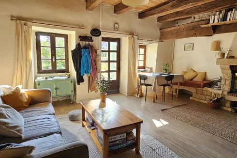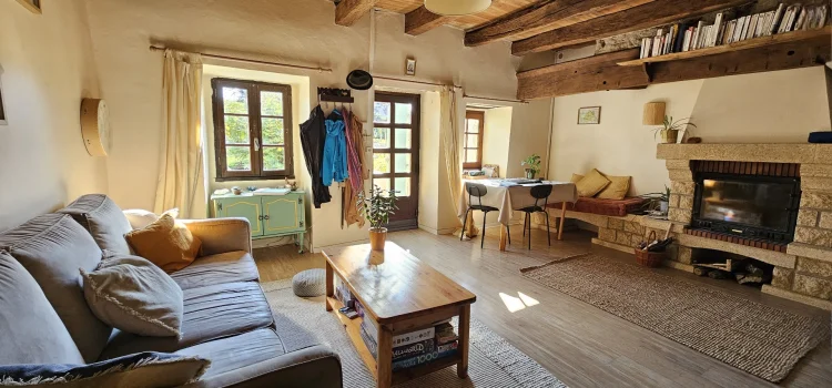 In St Jean de Laur, 10 minutes from amenities (schools, college, health services and shops), here is a very charming village house with very comfortable living spaces, like this beautiful 15m² kitchen/dining room. In addition, you will find all the functionality of a house on 2 levels with: 2 bedrooms, 2 separate toilets, a shower room/laundry room, a beautiful cellar and a bright and cozy living room with its insert allowing to heat all the rooms. Outside, a very cute little garden allowing to park a vehicle, to create a small vegetable garden and to take the eastern sun in the early morning, will welcome you in its setting of stone walls. A garage currently which can be transformed into habitable on two levels or inside there remains the old fireplace and scullery. An opening is possible between the 2 buildings. The main structure was renovated around 25-30 years ago (roof in 2005 for example). The interior is superbly maintained (electricity redone, connected to the sewer system, fiber installed, VMC). A rare property at this price and in this condition!