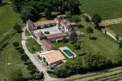Between the Dordogne and Saint-Emilion, this magnificent 18th-century castle, listed as a listed building, embodies the refinement of the French art of living. Upon entering, a majestic Louis XVI gate opens onto a perfectly symmetrical main courtyard, framed by two pavilions and period outbuildings. The main building, imbued with charm and authenticity, offers vast reception areas: an elegant dining room, a bright living room, and a large family kitchen. An adjoining guest house has its own living room, a dining room, and two comfortable bedrooms. Upstairs, three bedrooms with their own bathrooms complete the main building, while a fourth bedroom remains to be furnished. The landscaped park surrounds the residence and is enhanced by a swimming pool that invites relaxation. The estate covers 18 hectares, including 8 hectares of vines in production (50% red, 50% white) with the possibility of planting an additional 5 hectares. The renovated vat room, equipped with a thermoregulation system, and the caretaker's house add comfort and functionality. A rare place, combining prestige, authenticity and potential, ideal for a family home, a wine estate or an exceptional hospitality project. Information on the risks to which this property is exposed is available on the Georisques website: »
