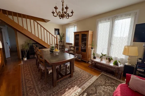 This unique house is divided into two identical parts, ideal for a large family or to generate rental income. It features a large plot with a garden and terrace, a heat pump, and two garages for optimal comfort. All within close proximity to all shops and amenities.