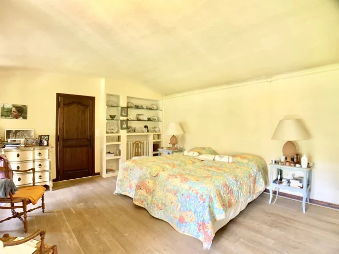 Between Grasse and Plascassier, an authentic Provencal mas to reinvent, in absolute calm. Situated in a green setting between Grasse and the hamlet of Plascassier, this rare 161 m² property captivates with its peaceful atmosphere and old-world charm. Here, in the heart of Grasse's hinterland, between wooded hills, jasmine fields and southern light, silence reigns supreme. An ideal place for lovers of nature, authenticity and space. A farmhouse steeped in literary history. This farmhouse once belonged to the American writer Frederic Prokosch, a singular figure of the 20th century, author of tales of travel and solitude. The absolute calm and beauty of the place undoubtedly inspired him. Today, this emblematic place awaits a new lease of life. To be rethought according to your desires. The house has six rooms, including four good-sized bedrooms. While it retains the charm of traditional Provencal architecture, some structural work is required, as well as general renovation to bring it up to date. It is an ideal base for a living project or second home, in a high-quality environment. An exterior with Mediterranean accents . The property is set in flat, wooded grounds, with a sparkling swimming pool, a barbecue area for summer evenings, and a carport. Automatic watering simplifies upkeep, while outdoor lighting makes starry nights a joy. The entire property is fully fenced, ensuring privacy and security. A strategically protected location . Between the historic center of Grasse - famous for its perfume factories, picturesque streets and panoramic views - and the gentle hills of Plascassier, this residential area is sought-after for its tranquility, yet close to all amenities. The villages of Valbonne, Opio or Mouans-Sartoux are just a few minutes away, and Cannes or Nice airport less than 40 minutes.
