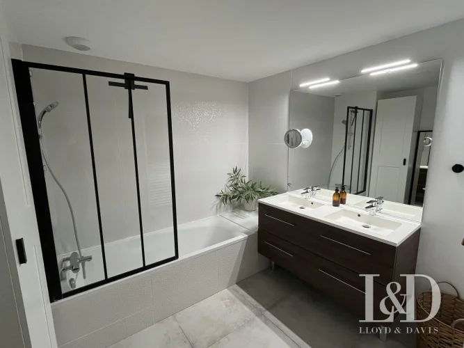 All openings are equipped with motorized blackout blinds. The apartment has reversible air conditioning. In the basement, you have 2 dedicated parking spaces with a charging system for electric vehicles, as well as a secure cellar.