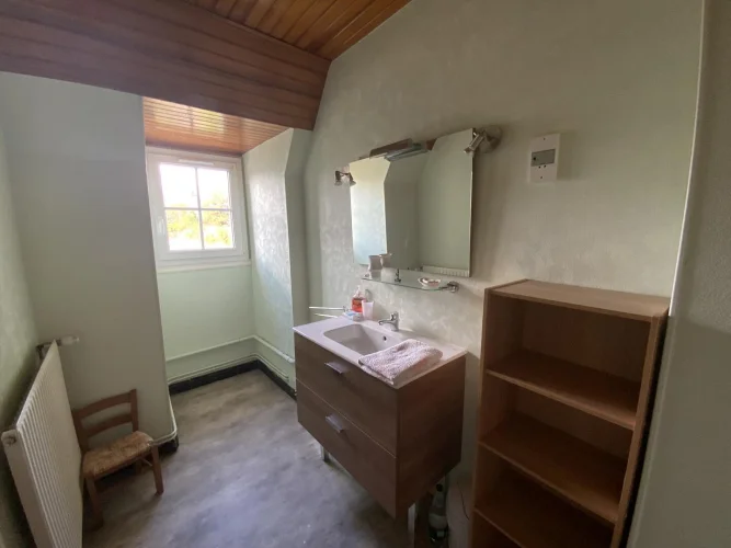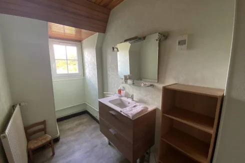 On the raised ground floor, accessible to people with reduced mobility, a large living room, a separate kitchen, a bedroom, a separate toilet, a shower room and a pleasant covered terrace, providing additional living space.