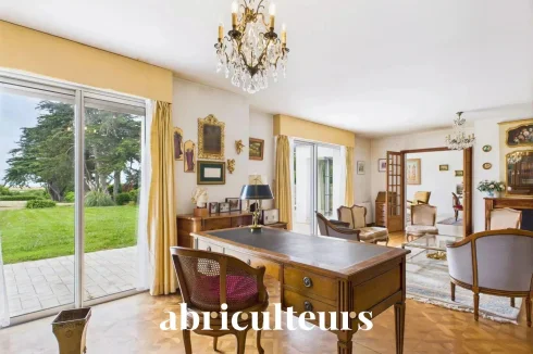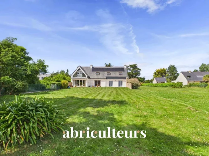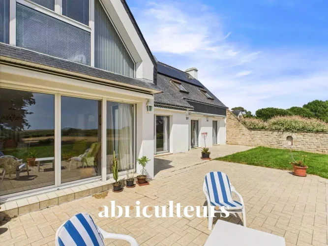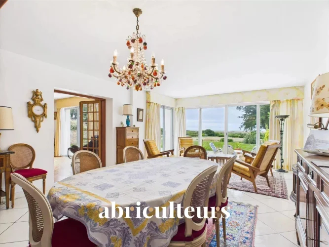 Discover this remarkable property, ideally located just a few steps from the sea. Nestled in the heart of a beautiful, wooded plot of 7,436 m², this spacious family home offers approximately 233 m² of living space and enjoys a pleasant open view towards the sea from several rooms. A rare setting, surrounded by nature and sea air.