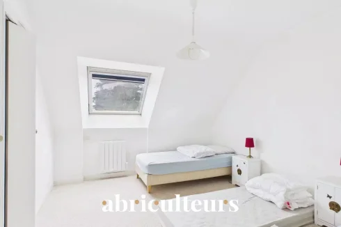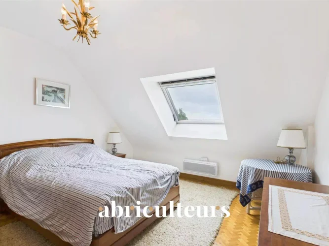 Upon entering, the ground floor reveals generous volumes, featuring an independent kitchen, a bright living room, and a second 37 m² living/dining area that opens onto the garden. A large master suite with bathroom (including a shower), a separate toilet, and a laundry room/pantry complete this level.