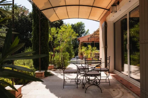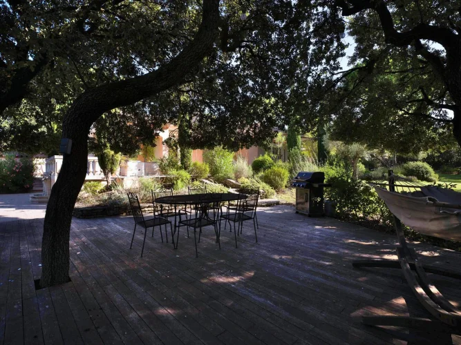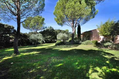 In the sought-after Saint-Antoine area, just a few minutes from the city center of the antique town, this house, built in 1998, is located at the end of a cul-de-sac, nestled in a wooded and green environment, without any disturbances. Significant renovations were carried out in 2018. With approximately 225 m² of living space, this house offers a peaceful and privileged living environment on a 2539 m² plot.At the end of the cul-de-sac, a few parking spaces are reserved in front of the property’s gate. The residential neighborhood is dotted with large properties, all sheltered from prying eyes, making this house a true haven of peace.The entrance hall opens onto a living area featuring a stunning cathedral ceiling, adorned with a beautiful chandelier that adds an elegant touch. The bright living room, with a fireplace, leads to a terrace overlooking the landscaped garden. A billiard table connects the living room and the kitchen, which can be converted into a large dining table for convivial meals. The kitchen is fitted and equipped, offering a view of the pool and access to the terrace with a barbecue. The sleeping area on the ground floor includes a master bedroom with a dressing room, a shower room, and a toilet, as well as a second bedroom with a bathroom and toilet. Additionally, a wellness area is equipped with a 4-person jacuzzi, a sauna, and a steam shower, opening onto a wooden terrace, providing a serene space. You will have a cozy area dedicated to relaxation, facing the landscaped garden.Upstairs, a spacious 14 m² mezzanine landing can be converted into a pleasant office. It leads to two bedrooms, one of which has a terrace, along with a bathroom, shower and a toilet. A third room can serve as a small child’s bedroom or a dressing room.The property is fully enclosed, and the grounds are landscaped with several well-maintained relaxation areas. The abundant vegetation creates a green oasis with beautiful pines, olive trees, holm oaks, laurels, and numerous Mediterranean plants. The terraces extend along the façade, both sunny and shaded, allowing you to fully enjoy the tranquility of the location. The heated swimming pool (5m x 10m) is surrounded by a beach/terrace facing a 27 m² pool house, equipped with a kitchen, a shower room, and a toilet.In terms of comfort, the house is connected to the municipal water supply, has a well, and has benefited from garden landscaping, a pool terrace, and exterior painting. Heating and cooling are provided by a ground-source heat pump. Aluminum joinery and mosquito nets are present in all bedrooms and bathrooms, and the insulation is of high quality. The house is also connected to the mains drainage system, has fiber optic internet, and features an electric gate, outdoor lighting, and an automatic irrigation system. A double garage of 35 m² is elevated with a mezzanine for storage.This prime location, along with numerous advantages, brightness, comfort, and a peaceful atmosphere, makes it a particularly interesting property, ideal for a primary or secondary residence.The property is located just 3 minutes from the shops in L’Isle-sur-la-Sorgue, 35 minutes from the Avignon Tgv station, and 1 hour from Marseille and the airport.