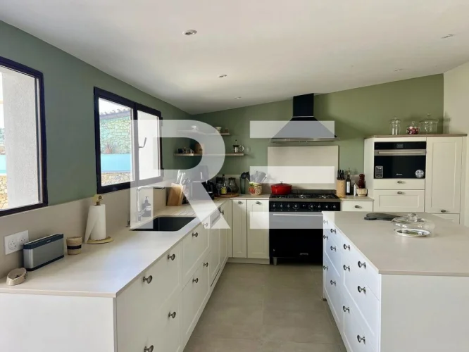 The property benefits from a recently redesigned garden with Mediterranean species, corten borders bringing a contemporary touch to the whole. Unobstructed view of the hills, 10x4m swimming pool, numerous outdoor spaces and several annexes (pool enclosure, technical room, boiler room, laundry room, outdoor WC etc.).