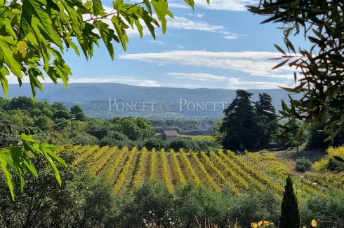 In the heart of the Vaucluse vineyards, a stone's throw from the renowned Mont Ventoux, on the edge of a pretty Mediterranean town. Nestled against a hillside, the house enjoys stunning views over the valley.