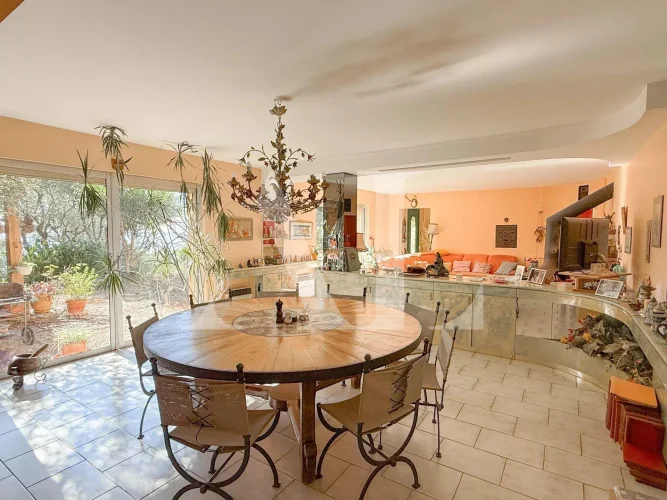 Located in a residential sector, in absolute calm and with a beautiful sea view, villa to renovate comprising 5 bedrooms, an office, several shower rooms, an equipped kitchen and a large living room open on a beautiful fishing outdoor space.