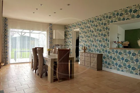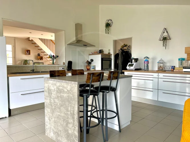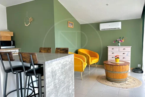 The main house features a bright and spacious living room, ideal for sharing family moments. The kitchen with dining area can accommodate large gatherings, and its five bedrooms offer comfortable space for everyone. An office completes the property, ideal for teleworking or as a games room.