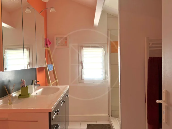 Adjacent to the house, a separate guest house is a financial asset or additional accommodation. It comprises a living room on the ground floor and, upstairs, a sleeping area with a shower room.