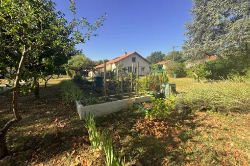 The 2,750 m² plot is flat, fenced, and planted with trees, and features a garden area and outbuildings.