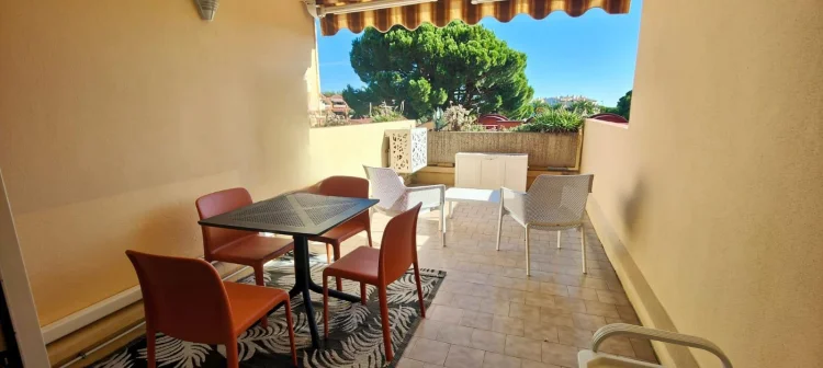 In a quiet, green and secure environment, in the heart of the Parc Vélusine residence in Antibes, this 2-room apartment of 26.40 m² located on the raised ground floor offers an ideal living environment.