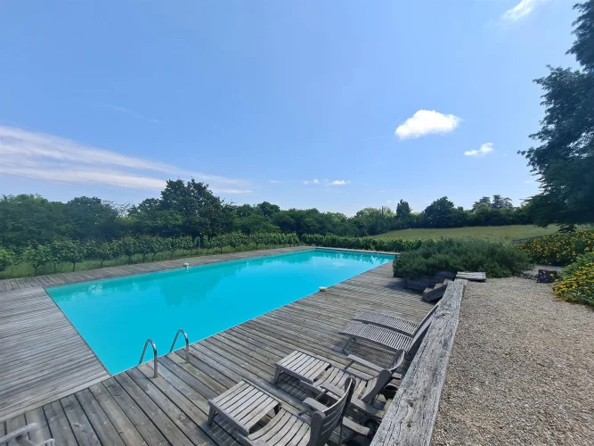 The chlorine pool, installed in 2019, measures 11 x 4 metres and enjoys full southern exposure with lovely views over the rolling hills.