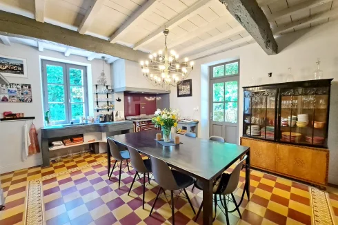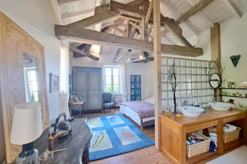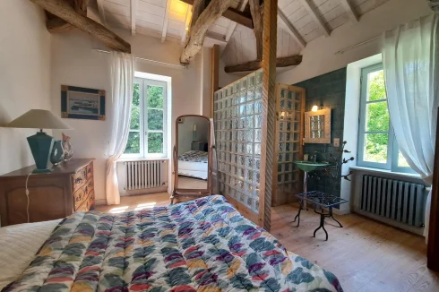 With approximately 250 m² of living space, the house is perfectly suited for a bed and breakfast activity, offering four spacious bedrooms, each with its own private bathroom. A fifth bedroom or a gîte could be created thanks to more than 100 m² of additional space still to be converted, particularly in the dovecote or the old workshop.