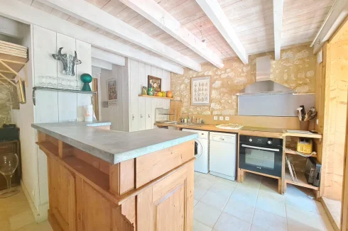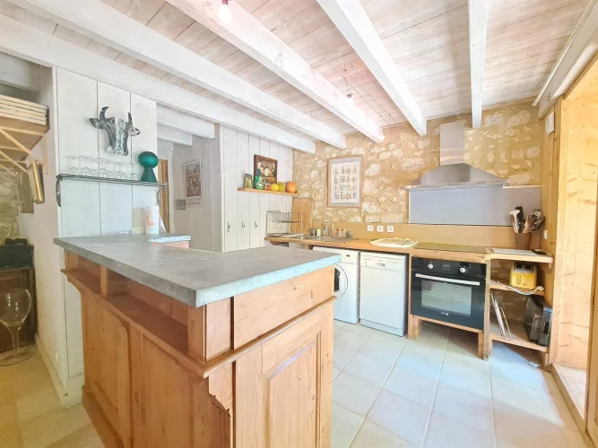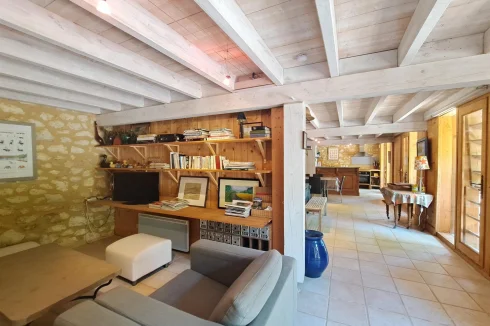 The property is in overall good condition: the roof and insulation were redone in 2014 (including all tiles and half the framework), Pvc double-glazed windows throughout, reversible air conditioning in the dining room and kitchen, and a wood stove in the living room. The individual wastewater system requires updating to current standards.