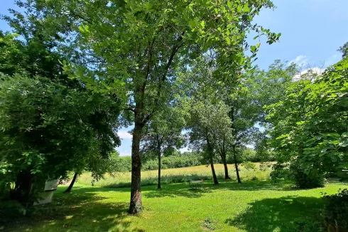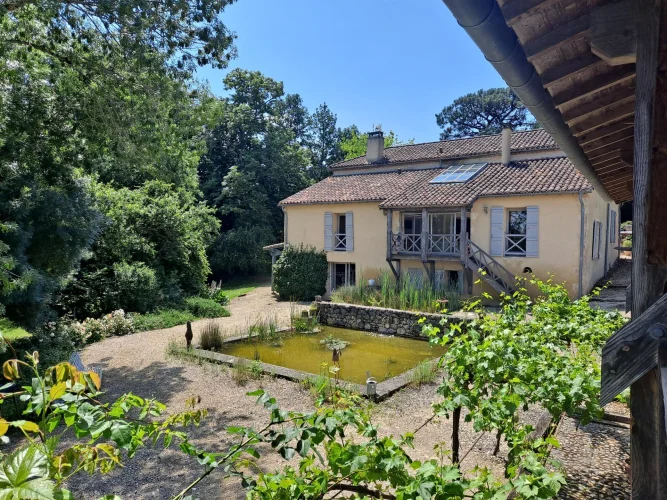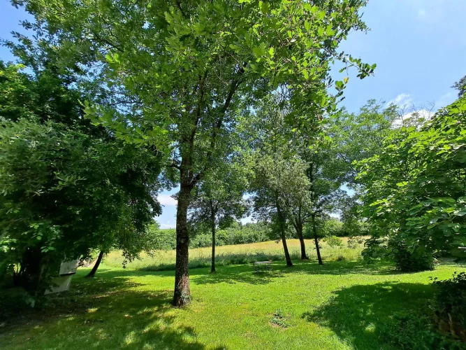 Outside, the house is surrounded by a two-hectare landscaped garden with century-old cedars, mature oaks, fruit trees, a vegetable plot, a natural pond fed by a small stream, and a traditional stone well. A second two-hectare field, ideal for horses or agricultural projects, completes this idyllic rural setting.