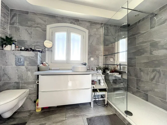 House with a parental suite on one level + 2 large bedrooms upstairs each with their shower room and toilet + dressing room.