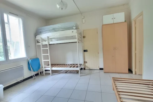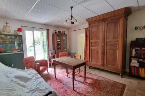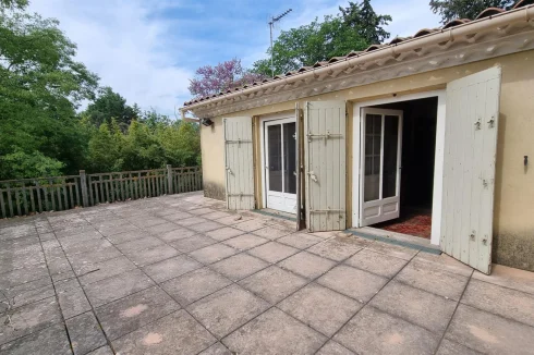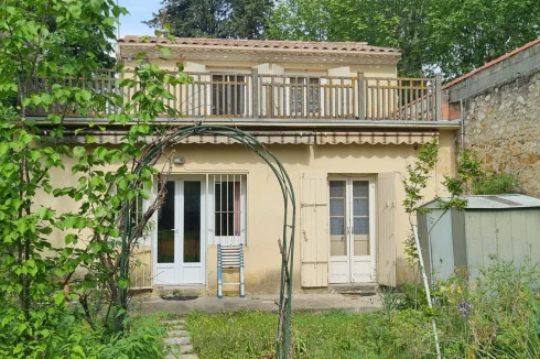 House in a green setting close to the town center, 110 m2 of living space on 2 levels. On the ground floor, a separate kitchen, a living room, 2 bedrooms, a shower room, 2 toilets, Upstairs 2 bedrooms, one with a shower opening onto a south-facing terrace of 70 m2. And a toilet. Enclosed land suitable for a swimming pool.
