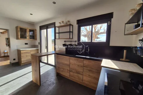 A 14 m² fitted kitchen opens onto a tiled terrace to the south of the house.