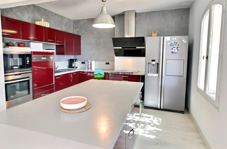 Le Barroux, if you dream of a breathtaking view of the Comtat Venaissin, this country house is made for you! Beautiful volumes, incredibly bright living spaces, a sufficient number of bedrooms and bathrooms to be comfortable with friends or family, a swimming pool with panoramic views, everything is there to charm you. Call us quickly to find out more about all the qualities of this beautiful property. Luberon Ventoux Real Estate in Caromb .