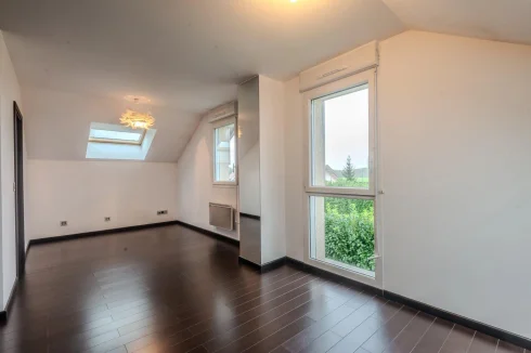 Pretty detached villa in Douvaine near the border. Built in 2014, this villa has 130 sqm of living space on 348 sqm of enclosed land. On the ground floor, you will find a fitted kitchen (with granite worktop) opening onto a 60 sqm living room, ideal for a Tv area and dining area with a chimney pipe. A cloakroom and guest toilet (Versace tiles) complete this level. Upstairs, a hall with wenge parquet flooring and dressing room leads to 3 bedrooms : 1 master suite (26 sqm) with dressing room, bathroom with bath, toilet, washbasin and a bidet Versace design 1 bedroom of 14 sqm with dressing room, shower, washbasin and toilet 1 bedroom of 9 sqm with shower, washbasin and toilet 1 terrace, 1 garage and 1 outdoor parking space complete this property. The land is suitable for a swimming pool. A must-see !