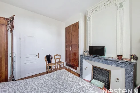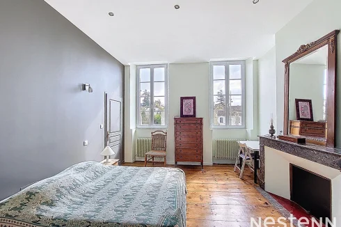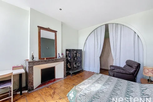 On the first floor, a landing leads to two bright bedrooms, one of 25 m² with a 7 m² alcove and a second of 15 m². Each has its own bathroom with toilet.