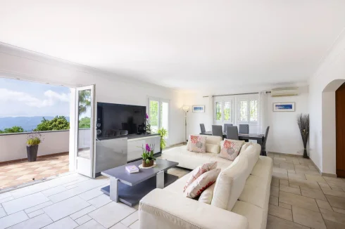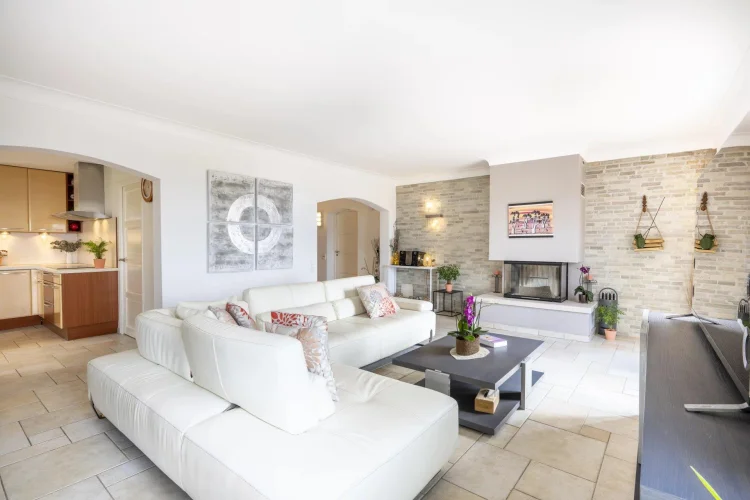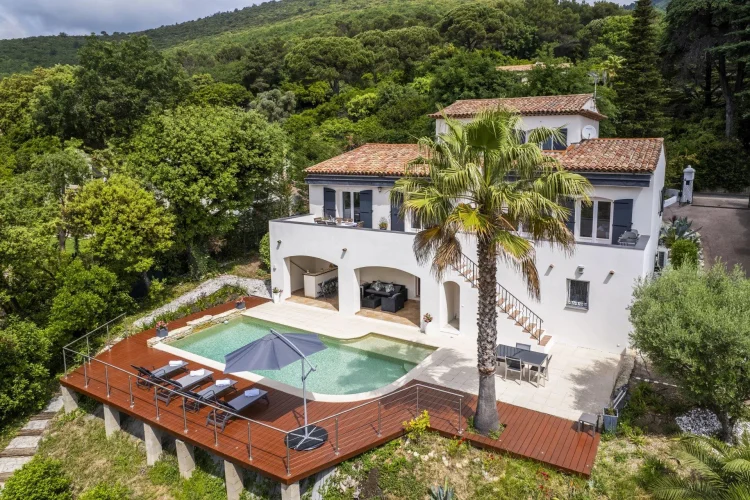 Sole Agent Situated in a peaceful private domaine, just five minutes from the perfume capital Grasse, this elegant five-bedroom villa captures the timeless charm of Mediterranean living. Set against a backdrop of sweeping panoramic sea views, it offers a serene retreat in the heart of the Côte d’Azur.