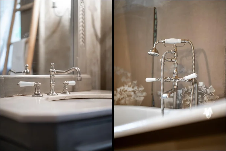 The ground level comprises: welcoming kitchen with fireplace, stone sink, and grand skylight adjoining dining area with direct access to stone wine cellar cozy sitting room with working fireplace and original stone water trough - all set upon elegant Bourgogne stone floors. A Wc, shower room with Zellige tiling, and utility/laundry room complete this level.