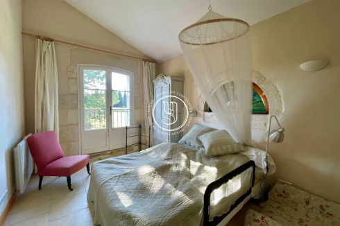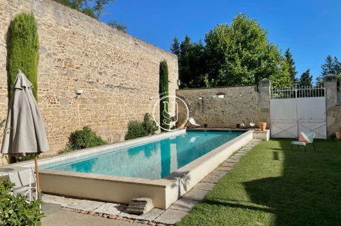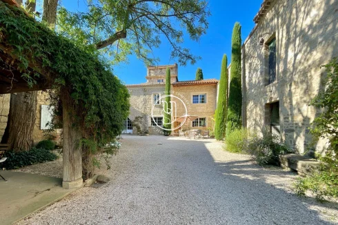 Superb 560 m² stone property dating from the 17th century, located in the highly sought-after Pont du Gard area, on the Uzès-Nîmes axis. It has undergone high-quality renovation, in accordance with best practice, in order to preserve the authenticity of the original farmhouse. Built on a large enclosed plot of over 4.6 hectares with trees, sheltered from view and without any nuisance, this residence has many features that make it exceptional.