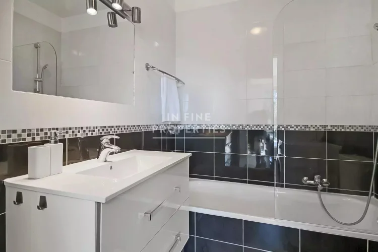 The apartment consists of an entrance, a bright living room with fully equipped open kitchen, open onto a pleasant terrace of 11m2 facing south-east, offering an open view of the splendid garden of the residence.
