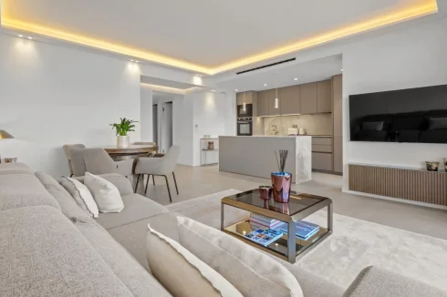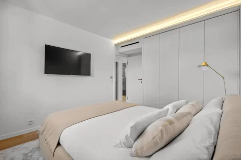 The apartment has been renovated with noble materials, such as marble, bringing a touch of elegance and modernity. The kitchen is fully equipped.