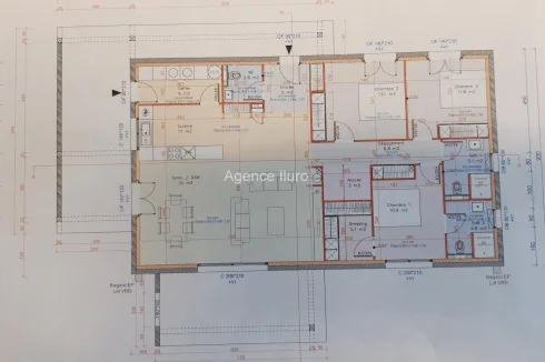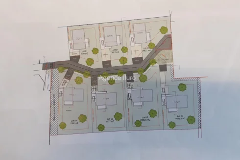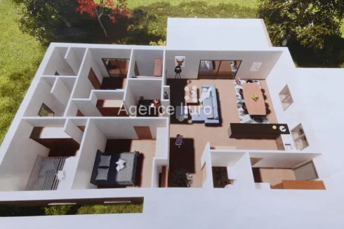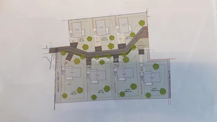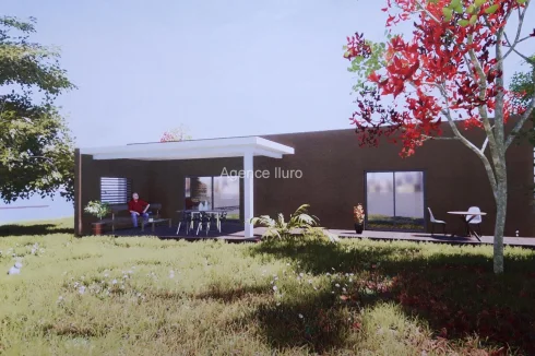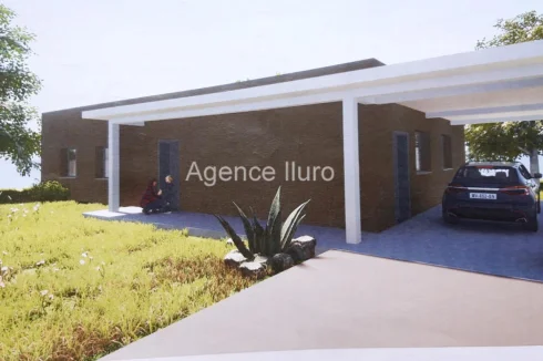 Set of 7 single-storey villas under construction delivered out of water and air with a living area of 127 m² on plots of land from 770 m² to 1,000 m². Building permit provided. Contemporary construction. Villas type T4 (3 bedrooms, 2 bathrooms and 3 toilets). Large living room with open kitchen of 52 m².