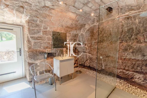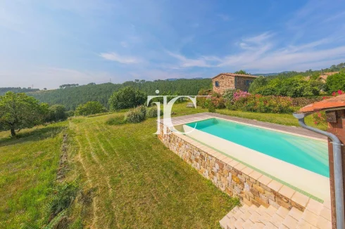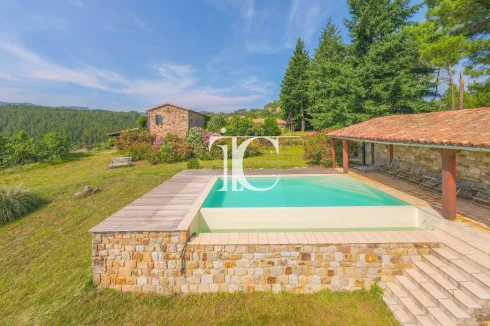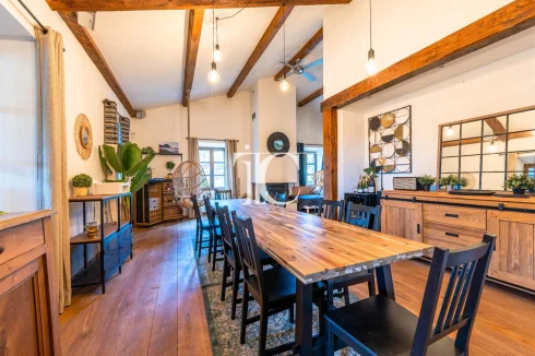 The farmhouse features 6 bedrooms and boasts high-end amenities. The interior decor is elegant and refined, creating a tranquil atmosphere throughout. The beautifully landscaped garden complements the property, providing a serene setting for a peaceful vacation. The splendid terrace invites you to extend your days and indulge in the exceptional surroundings.