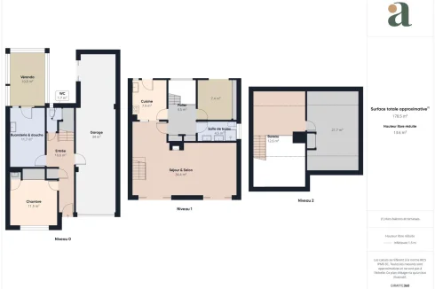 A large garage with motorized opening of approx. 35M² completes this level.