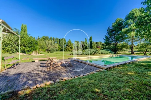 This characterful farmhouse, dating from the 19th century and fully renovated, consists of two distinct yet connected dwellings: the main Mas and a Mazet (built in 2008). The whole property offers a beautiful architectural harmony, blending Provençal tradition with modern features.
