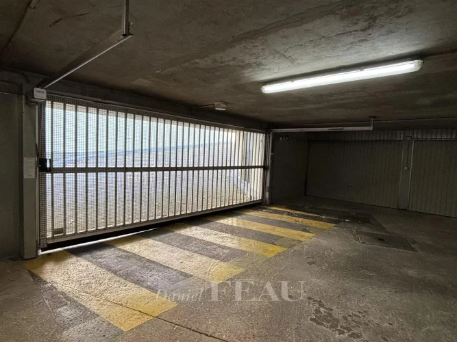 A parking space in a closed garage and an outdoor parking space opposite the building's entrance are also included.