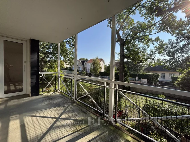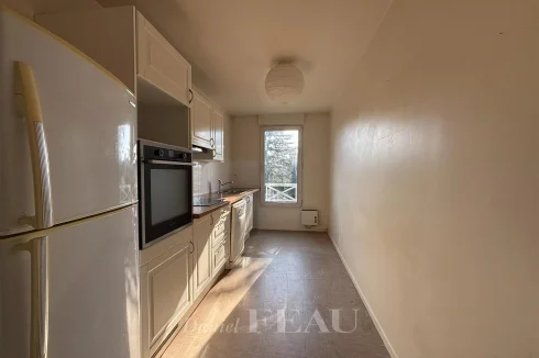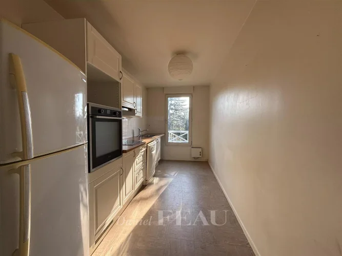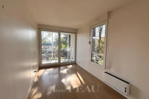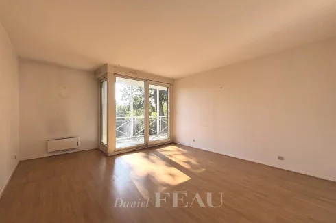 The flat enjoys unobstructed views of green surroundings and is close to public transport (buses), shops, schools and the banks of the Seine.
