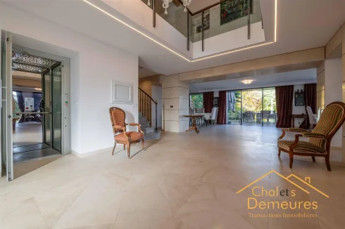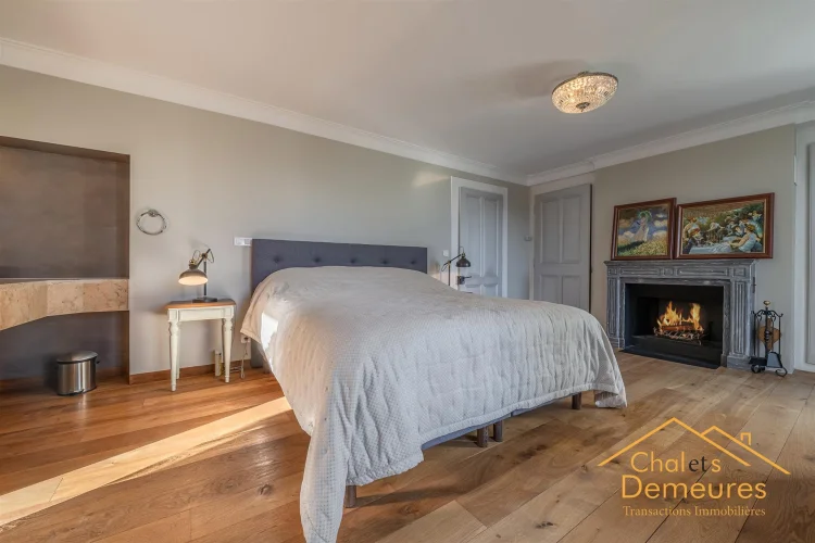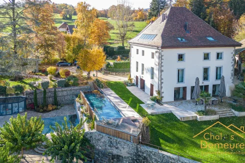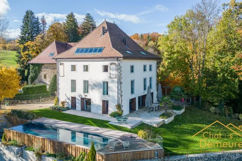On the outskirts of Geneva, just over 15 km from the border, with panoramic views and an intimate, pastoral setting on 31 428 m2 of woodland and meadows, this magnificent historic property has been completely renovated over 600 m2, with beautiful stonework and a cosy, old-fashioned atmosphere inviting you to relax, professional kitchen, lift to all levels, vast reception hall, Tv lounge, double dining room, 8 en suite bedrooms including 1 master, games room with bar, wine cellar, 2 swimming pools, sauna, steam room, vegetable garden and an annexe of around 200 m2 to renovate complete this exceptional property. Find out more. Yannick Bardel Chalets et Demeures