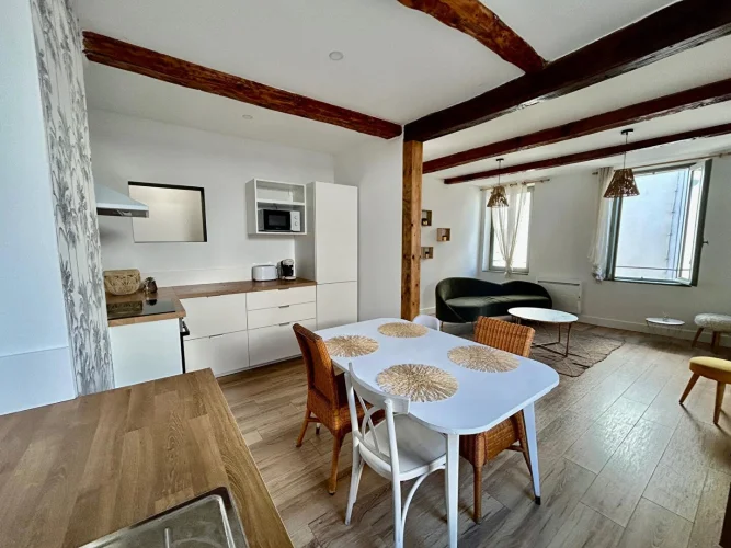 Bellissimmo Narbonne Agency presents exclusively: Narbonne Center Located on the 2nd floor of a small condominium, sublime 60sqm two-bedroom apartment, fully renovated with lots of character. Composed of a living room with open-plan fitted kitchen, 2 beautiful bedrooms, Wc and shower room. Chic decor, ideal for first-time buyers or for AirB&B rentals.