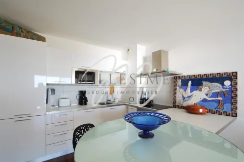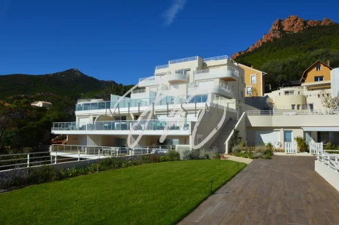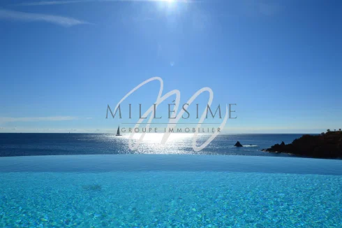 Boasting spectacular sea views in an iconic luxury residence at the foot of the Esterel Mountains, this superb 2-room apartment offers exceptional living space and amenities. Located in a nature reserve overlooking the sea, this favorite property benefits from one of the most fabulous settings in the region with a 24m2 terrace comparable to the deck of a boat overlooking the Mediterranean. The air-conditioned living room with its open and equipped kitchen offers incredible transparency onto the sea, as does the beautiful bedroom. A bathroom with shower, a separate toilet, and private parking complete this property for added comfort. The residence features a sublime heated infinity pool, direct access to the sea, and a caretaker. Visit without delay with your Millésime Immobilier Agay agency.