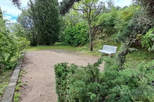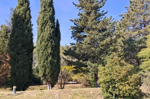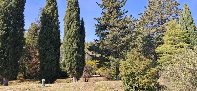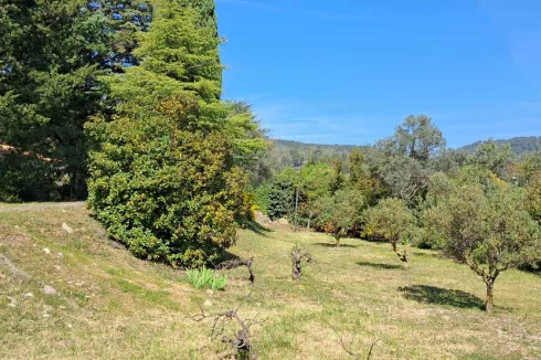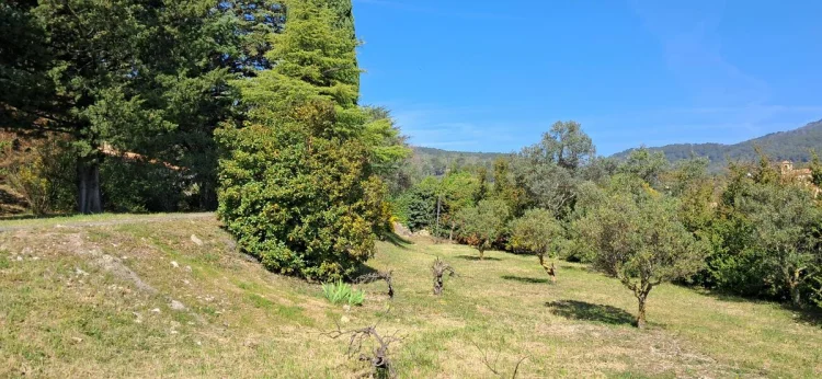- Land of 2469 m2 supporting the large paved beach and the swimming pool for part and, for the rest, in the form of a park planted with secular trees, shrubs of Provence and olive trees.
