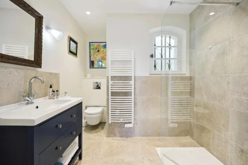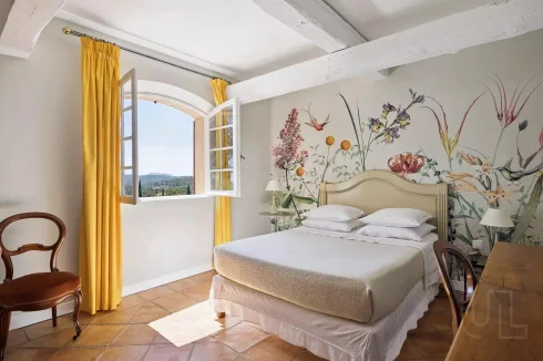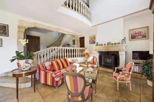 The interior is every bit as captivating as the exterior. The house is arranged with four refined suites, each tastefully decorated to provide comfort and style. The reception rooms showcase noble materials, with a vaulted ceiling in the dining room and a central cathedral-style living room that rises majestically, filling the space with light and character. These welcoming spaces open seamlessly onto the gardens, allowing the interiors and exteriors to flow together in perfect harmony.