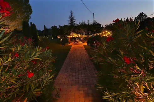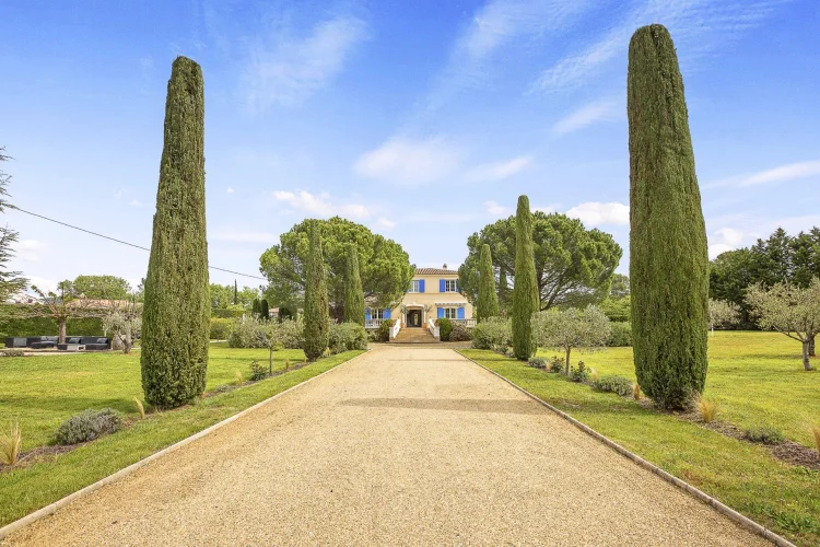Set on a beautifully landscaped 8,000 m² plot, the estate includes a spacious villa of approx. 218 m² and an independent 30 m² apartment. A majestic cypress-lined driveway leads to an elegant entrance hall opening onto two living rooms and a dining room with a fully equipped open-plan kitchen, with direct access to a covered terrace perfect for al fresco dining.