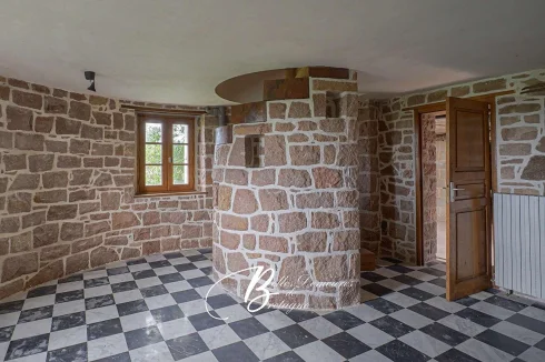 On the ground floor, a room, a boiler room and a garage giving access to the ground floor of a tower on 3 levels with independent access. On the ground floor, a reception room, on the first floor, a bedroom and its bathroom-wc, on the second floor, a room with exposed beams.