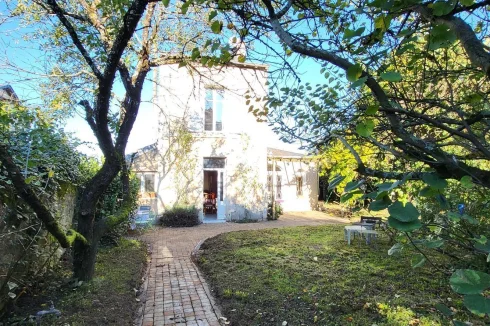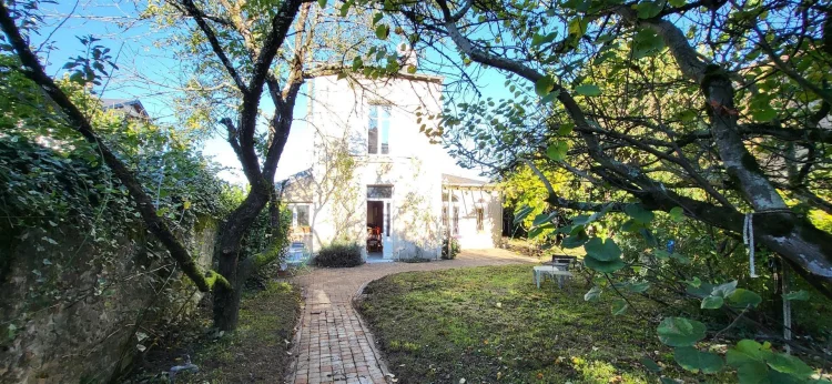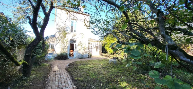 The house stands at the end of a driveway facing the sun, in full light all day long. Set back, not visible from the street, not semi-detached, this charming house was built in 1914 and has been extended. It is accessed by a small paved alley lined with a few raspberry bushes. It has a 500 m2 garden planted with fruit trees: pear and apple trees in espaliers, a fig tree, kiwis and many other species.
